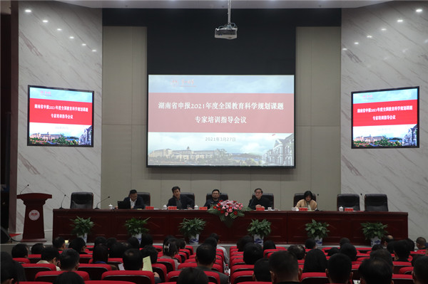 为做好2021年度全国教育科学规划课题申报工作,提高我省全国教育科学规划课题申报质量和成功率,3月27日上午,湖南省申报2021年度全国教育科学规划课题专题讲座在我校举行。湖南省教科院副院长杨敏、我校副校长曹兴出席了讲座。讲座由湖南省教育科学规划办常务副主任、省教科院规划所所长黄龙威主持,来自省内各高校、科研院所等科研单位的130多位专家学者聆听了本次讲座。