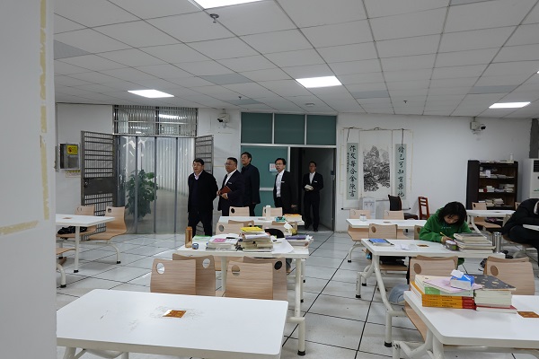 罗成翼一行实地考察了即将改造的润之学堂和考研自习室,听取了相关负责人汇报。罗成翼对图书馆教职员工的精神面貌、工作态度以及图书馆所取得的工作业绩表示肯定。