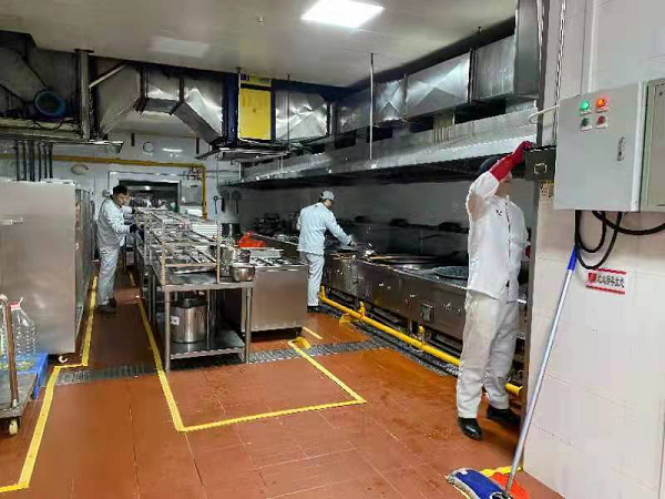 食堂进行清洗消毒工作