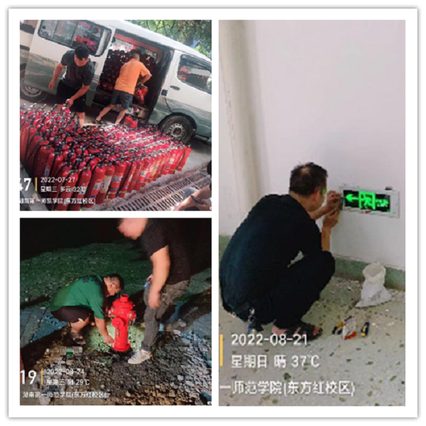为确保新学期校园平安稳定,保卫处对消防、监控、门禁等安全基础设施进行了全方面的排查检修。校内4000余具灭火器、应急灯、疏散指示灯等消防器材更新完成。