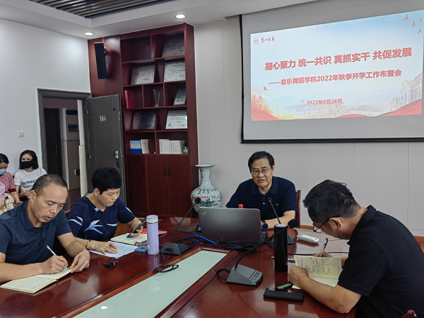 8月26日,音乐舞蹈学院召开了以“凝心聚力 统一共识 真抓实干 共促发展”为主题的秋季开学工作会议。副校长江正云出席会议,对学院工作与发展提出了期许与要求。学院详细传达了暑期干部培训会议最新精神,聚焦学院重点工作与核心指标要求,对新学期加强办学内涵建设作了科学规划。