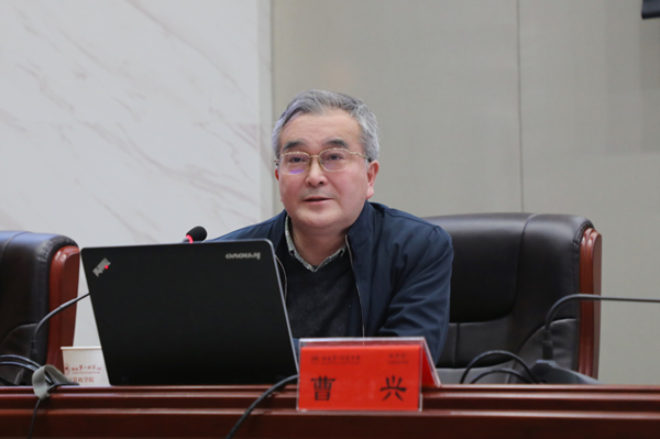 曹兴作专题辅导。他详细梳理了国家社会科学基金项目申报书撰写的重点和难点,围绕“申请人写什么、评审人看什么”的主线,从选题、撰写技巧、项目申请和评审要点等方面深入浅出、全面系统地为与会教师进行了讲解。他指出,申报书是与评审人交流的唯一载体,要做到“不解释,不掩饰”。对于申报与撰写要坚定信心、下定决心、保持耐心、不断打磨。在谈到社科成果奖申报时,他指出,老师们要对标补短,找准问题,分析原因,加强成果凝练总结,不断提高申报材料的质量。