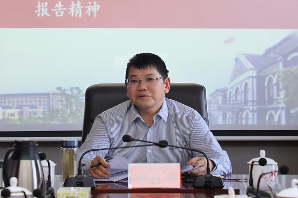 10月16日下午,校党委理论学习中心组在百熙楼713召开扩大会议,第一时间专题学习习近平总书记在中国共产党第二十次全国代表大会上的报告,全体校领导、各二级党委书记、有关职能部门负责人参加学习。校党委书记罗成翼主持学习。