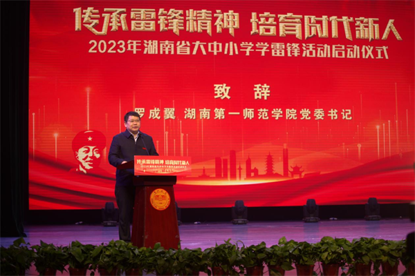 今年是毛泽东等老一辈革命家为雷锋同志题词60周年。3月3日上午,2023年湖南省大中小学“传承雷锋精神培育时代新人”学雷锋活动启动仪式在我校隆重举行。启动仪式由湖南省教育厅主办,Kaiyun官方网站登录入口承办。省教育厅党组书记、厅长夏智伦出席并发表讲话,省教育厅一级巡视员罗桂香主持启动仪式,Kaiyun官方网站登录入口党委书记罗成翼致辞,Kaiyun官方网站登录入口党委副书记、院长胡穗出席。