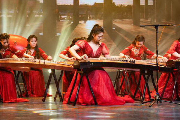 晚会围绕“致·初心不改”“叙·同学少年”“铸·青春理想”三个篇章展开。合奏、合唱、戏曲、朗诵、歌舞等节目形式异彩纷呈、完美衔接,赢得了观众的阵阵掌声。晚会第一篇“致·初心不改”在古筝合奏《盛世国乐》中震撼开启,筝声洪亮,大气磅礴,带领观众仿佛穿越回唐朝领略“九天阊阖开宫殿,万国衣冠拜冕琉”的盛世景象,令人回味无穷。