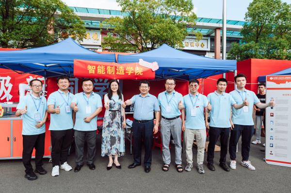 智能制造学院的迎新点放置了工业机器人、鸿蒙实验箱等专业设备,现场科技感满满,吸引新生和家长连连拍照打卡,大家更加真实地体验到了科技创新的魅力。一系列创意又走心的迎新方式,成为新生们的“独家记忆”。