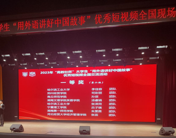 9月23日,由全国高等学校大学外语教学研究会指导、南京大学联合高等教育出版社共同举办的,2023年“高教社杯”大学生“用外语讲好中国故事”优秀短视频作品全国交流活动在南京大学落下帷幕。由我校外国语学院教师李双团队指导,外国语学院学生朱雯茜、龚安琪、冯洋晗,数学与统计学院学生沈鼎杰,文学与新闻传播学院学生易国威共同创作的短视频作品《太平街·湖湘忆》在此次大赛中脱颖而出,荣获全国一等奖,学校荣获“优秀组织单位”奖。