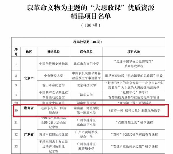 11月27日,全国大中小学思想政治教育一体化战略研讨会在上海召开。教育部、国家文物局在会上共同发布了以革命文物为主题的“大思政课”优质资源精品项目100个名单,我校报送的“青春一师榜样力量”主题现场教学项目成功入选。