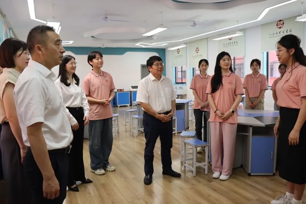 我校党政办、宣传部、教务处、招生就业处、产教融合处、校团委、初等教育学院、物理与化学学院、商学院等部门负责人陪同调研。