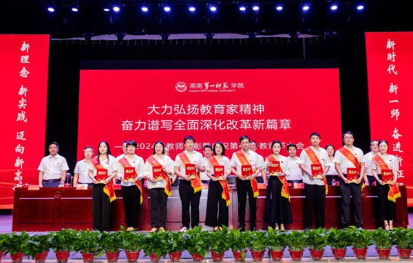 9月6日下午,我校在东方红校区田汉剧场隆重举行2024年教师表彰暨庆祝第40个教师节大会。校党委书记罗成翼发表讲话,校长胡穗主持大会。全体在家校领导、党委委员,退居二线的老领导,全体教职员工,离退休老同志代表,一、二附小教师代表及部分学生代表参加大会。
