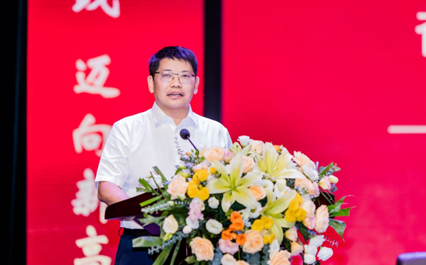 罗成翼发表讲话,代表学校党委、行政向全体教职工致以节日的问候和美好的祝愿,向离退休老同志致以崇高的敬意,向受表彰的单位和个人表示热烈的祝贺!