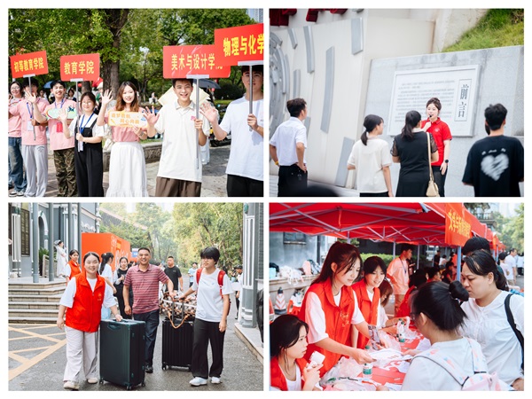 9月7日清晨,陆续抵达长沙火车站、汽车西站、汽车南站、地铁6号线长庆站1号口的新生刚出站,就被热情洋溢的迎新师生志愿者吸引。踏进校园,从大型展板、电子屏、道旗、创意打卡点的“宣传红”视觉冲击中感受到了被欢迎的喜悦,欢喜地拍照留念,记录自己与“梦中情校”一师终于“奔现”;从高举院牌“捞人”、热心指路答疑、抢着搬运行李送至宿舍的“志愿红”情感冲击中感受到了被关爱的幸福,许下明年也要当迎新志愿者的心愿。灿烂笑容,遍布校园每个角落。