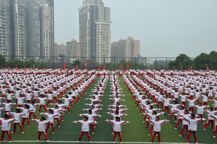 随后,代表队部分成员为全场观众表演了国家体育总局最新颁布的第九套广播体操及全国第三套小学生广播操《七彩阳光》。开幕式结束后,各项比赛正式开始。