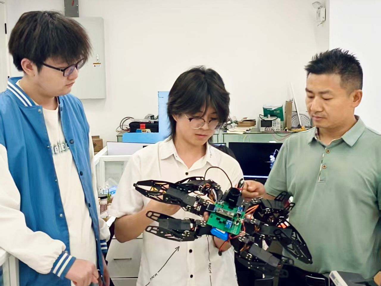 为了让学生在团队协作中深化集体观念,谭周文老师积极构建“传帮带”机制。在团队中,他引导高年级学生不仅要传授技术经验,更要传递团结协作、互帮互助的精神。通过共同攻克技术难关,学生们深刻体会到个人力量的有限与团队协作的强大,培养了强烈的集体荣誉感和责任感。同时,他建立了进度检查机制,借此机会与学生深入交流,及时了解学生的思想动态,对学生进行针对性的思想引导,并同时确保了训练效果。