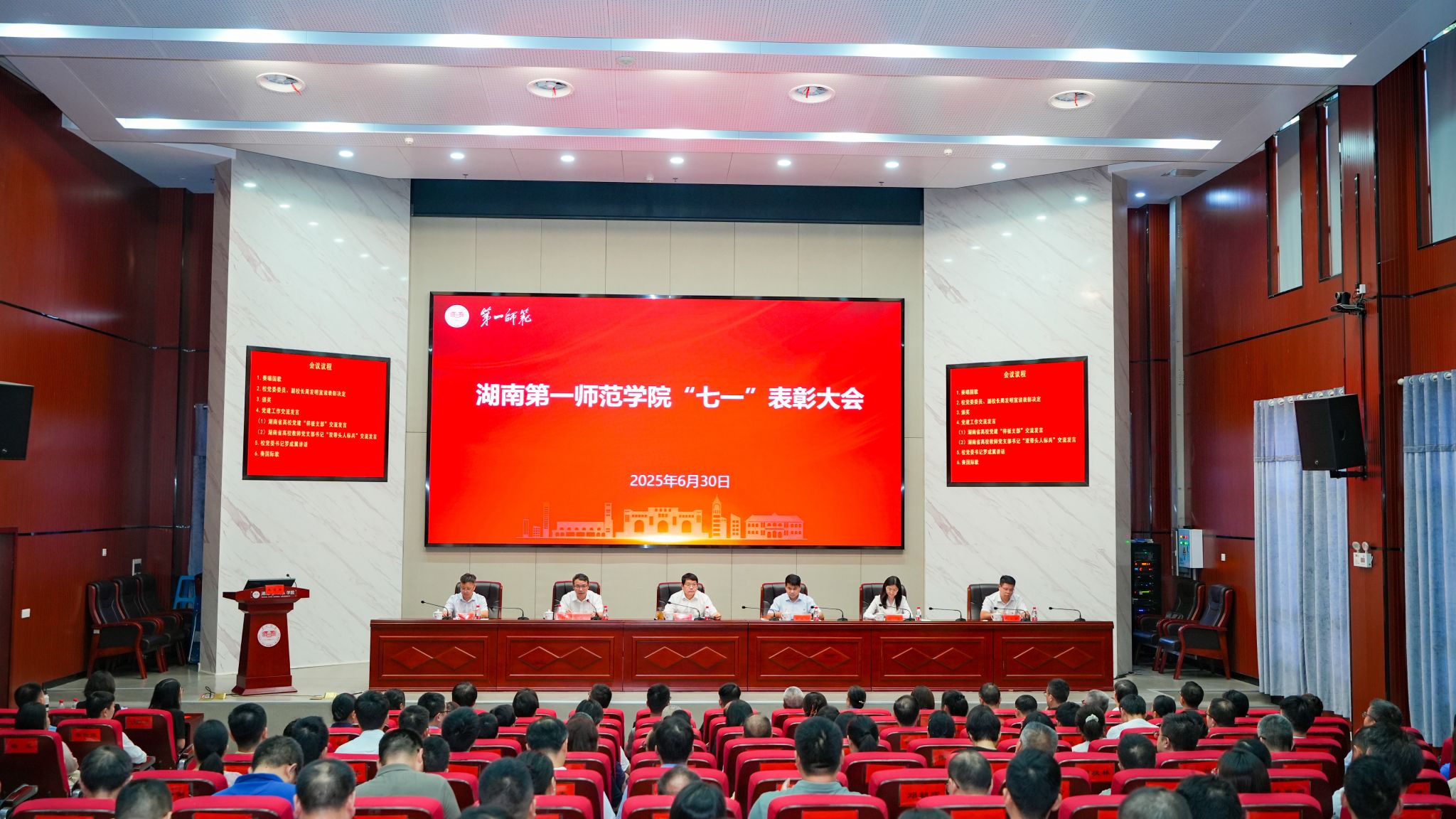 为庆祝中国共产党104周年华诞,表彰先进典型,6月30日上午,我校“七一”表彰大会在东方红校区百熙楼228报告厅举行。校党委书记罗成翼出席大会并讲话。全体校领导、中层干部、“光荣在党50年”老党员、党支部书记,以及受表彰的先进基层党组织和教师党员参加会议。校党委委员、副校长彭晓辉主持大会。