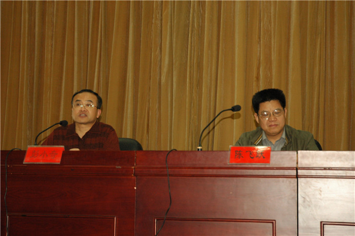 4月19日下午,我院在东方红校区科技楼演播厅举行了学习贯彻全省教育工作会议和建设教育强省规划纲要宣讲报告会。省教育厅副巡视员陈飞跃作专题报告,院长彭小奇主持报告会。