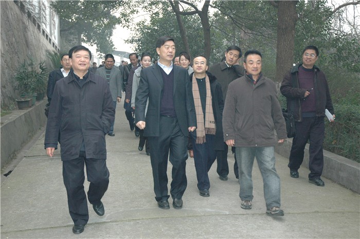 于来山一行来到我院城南书院校区后,兴致勃勃地登上了城南书院校区的至高点妙高峰,实地视察了君子亭、青年毛泽东铜像广场、火炬楼、体育馆、水井、八班教室、工人夜学等景点。在参观城南书院校区的过程中,于来山关切地叮嘱大家一定要在尊重历史的基础上抓紧修缮,恢复毛主席母校的原貌。在工人夜学的教室里,作为我院校友的于来山,如数家珍般地为大家详细介绍了一师的历史,饶有兴致地讲述了毛主席当年组织工人们办夜学、学知识的那段故事。