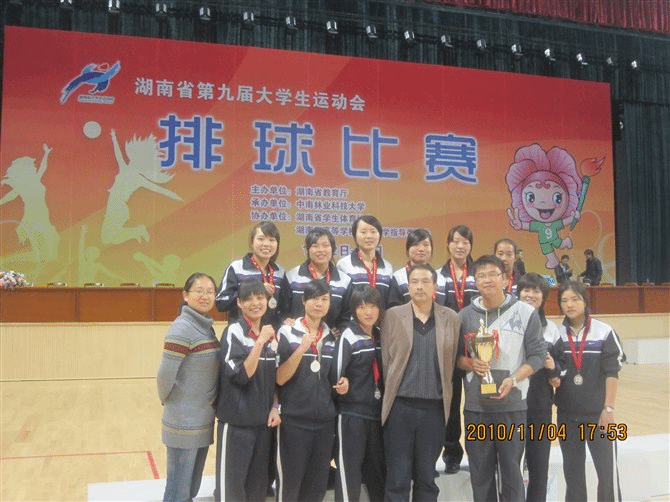 湖南省第九届大学生运动会本科学院组女子排球赛、女子篮球赛于2010年11月5日分别在中南林业大学、湖南师范大学落下帷幕,我院女排喜获第二名、女篮喜获第三名。这也是我院升本后首次参加全省本科学院组大学生体育竞赛取得的好成绩。