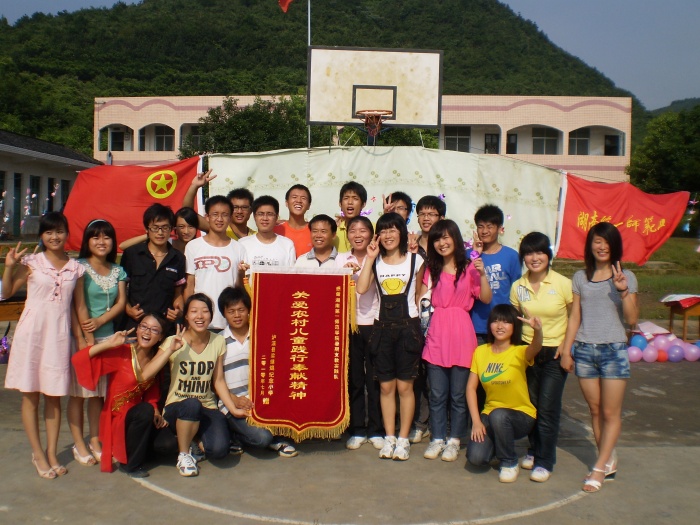 赴泸溪县实践团由来自我院各系部的20名同学组成。该实践团在院团委副书记罗祥云老师的带领下,于7月12日从长沙出发,奔赴目的地湘西自治州泸溪县上堡乡梁继焜纪念小学。在为期11天的实践活动中,队员们白天借村民家的空房生火做饭,晚上住在教室里的课桌上或地板上,克服生活及教学条件上的重重困难,精诚团结、无私奉献,确保了各项实践活动顺利进行:调研组深入学校、家庭走访,完成了“农村家庭经济来源情况”、“寻访一师人”两项社会调查任务,支教组组织了200余名农村小学生、初中生集中开展教学活动,教孩子们说普通话、说英语,教他们唱歌、跳舞、体育锻炼,也教给了他们许多文化常识、科学知识,帮助他们增长见识、开阔视野。7月22日上午,整个实践活动在队员与当地小学生精心编排的《最好的未来》汇报演出中落下帷幕,院团委副书记罗祥云代表我院广大大学生向当地小学生捐赠了百余册图书及部分学习文具,梁继焜纪念小学赠与我实践团“关爱农村儿童、践行奉献精神”荣誉锦旗。