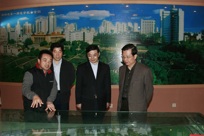 周强省长和陈润儿书记多次参观一师,对一师有较深入的了解,在本次陪同参观中也就自然成了一名优秀的“助理讲解员”。周省长告诉强卫书记:第一师范的诞生标志着湖南师范教育的开始,第一师范是湖南现代教育的滥觞,现在我们提倡素质教育,其实,那时的一师就是推行的素质教育,既重德育、智育,也重体育锻炼。在毛泽东经常阅读的《大公报》前陈润儿书记说,人们一般不知道长沙诞生了《大公报》,20世纪前半叶,中国有两家影响较大的《大公报》,即诞生于1902年的天津《大公报》和诞生于1915年的长沙《大公报》。长沙《大公报》一开始诞生便表现出了锐不可当的气势,其影响超出了同时期的天津《大公报》。强卫书记还不时发问,“一师那时就有生理卫生课了?开的课程比较全啊。”“毛泽东创建的体操现在的学生还做吗?”“毛泽东给他的老师袁吉六先生书写墓碑是在一九四九年前还是在一九四九年后?” 当强书记了解到毛泽东当年游学考察社会、撰写《农村社会调查报告》、创办农民夜校、创建新民学会等一系列社会实践活动后,他感慨万端:“现在的大学一进门就把大门关上了!”
