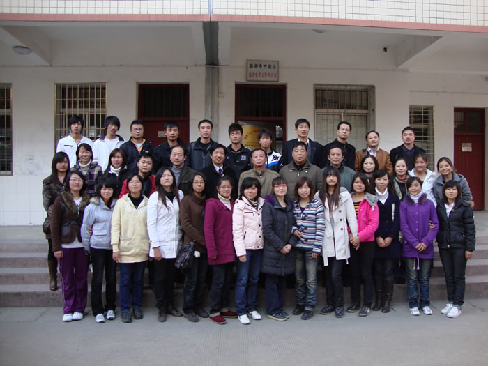 检查组在临湘市第三完全小学与基地领导、指导老师及实习学生合影
