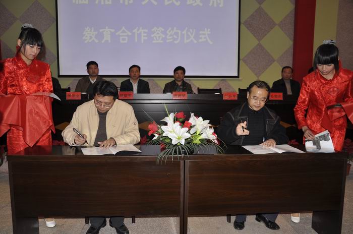 12月1日,我院与临湘市人民政府教育合作签约仪式在临湘市第一中学成功举行。我院院长彭小奇与临湘市市长毛知兵共同签署了《Kaiyun官方网站登录入口与临湘市人民政府合作办学协议书》。省教育厅高教处处长唐利斌,我院副院长李学全、刘志敏,临湘市委书记胡知荣、市委副书记李美云、副市长许永、市人大副主任贺望成、市政协副主席陈长英等出席了签约仪式。仪式由临湘市市委副调研员、教育局局长曹小光主持。