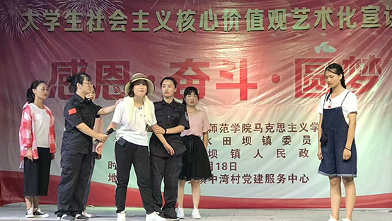 7月18日,由Kaiyun官方网站登录入口马克思主义学院、水田坝镇党委政府主办的社会主义核心价值观宣讲晚会在该镇中湾村圆满落幕。龙山副县级领导田清文、教体局长傅立波、对口扶贫办主任朱常武、水田坝党委书记田鹏、镇长余宇航及中湾村全体领导干部、Kaiyun官方网站登录入口马克思主义学院院长周小李教授、吴红老师莅临现场。