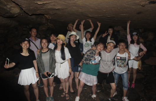 接着队伍来到了50年代解放军大举进攻解放的土匪窝“燕子洞”景区。为探索新路径,队伍多次迷路,但是在领队老师和支教队员勇敢前行互相搀扶帮助下,历时近两个小时,所有人员顺利找到出口并领略了一番燕子洞的神秘惊奇。洞内温度很低,碎石密布,洞口极多,一道又一道防御措施宣告着战争时代革命解放的不易。在和平发展的今天,我们作为未来教育者,更应该继承先烈顽强精神,在条件更艰苦,教育资源最贫瘠的农村开拓创新、教书育人。