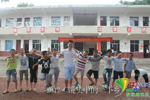 体育课上,何时来和孩子们一起踢足球,建立了深刻的“革命友情”。中国青年网通讯员 肖依婷 摄