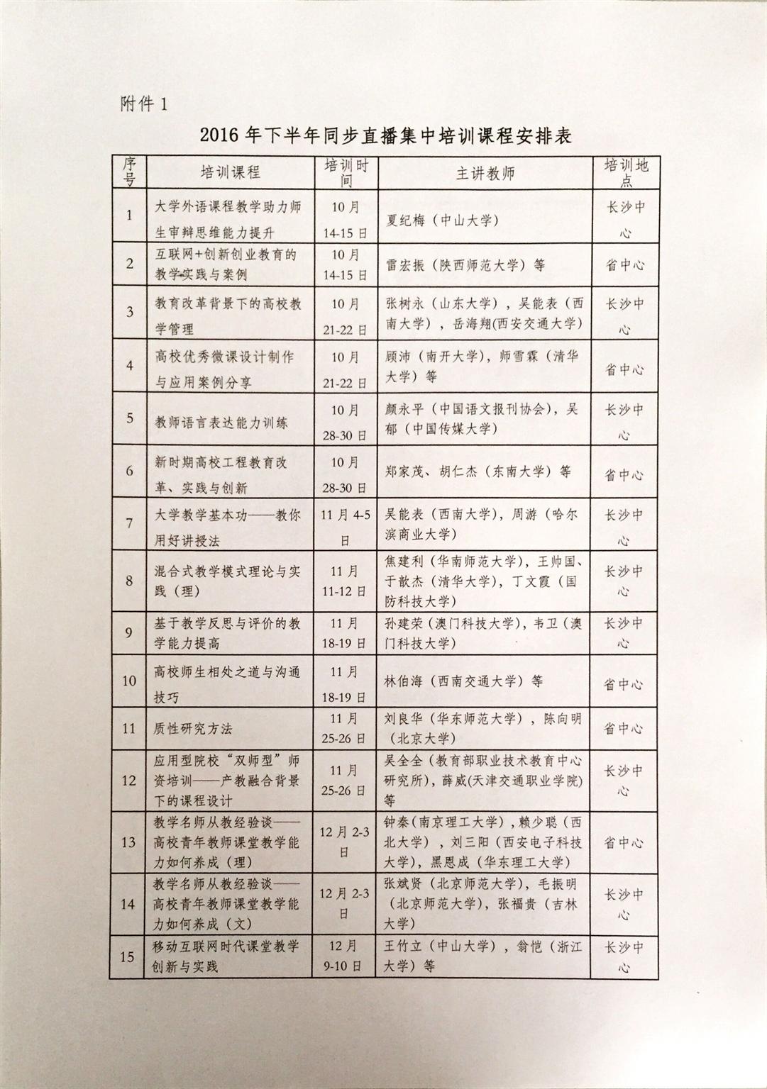 各学院按照教育部全国高校教师网络培训中心公布的2016年下半年同步直播集中培训的开设课程 (见附件l),以承担所培训课程相同或相近教学任务的中青年教师为主。