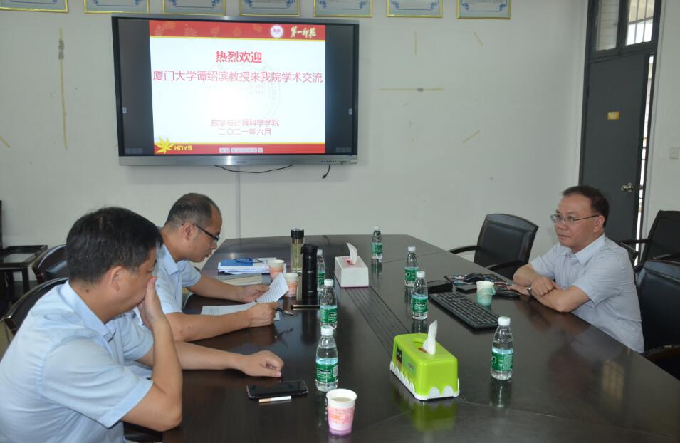 6月18日下午,厦门大学数学科学学院院长、博士生导师谭绍滨教授,应邀来我校玉衡北302会议室作了“Lie algebras,Kac-Moody algebras and vertex algebras”的学术报告。报告会由数计院院长欧阳章东主持,数计院部分师生代表参加了此次报告会。