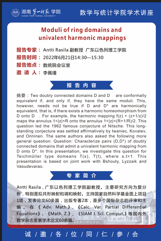 上一篇:学术预告|Composition operators on Bloch and Hardy type spaces
