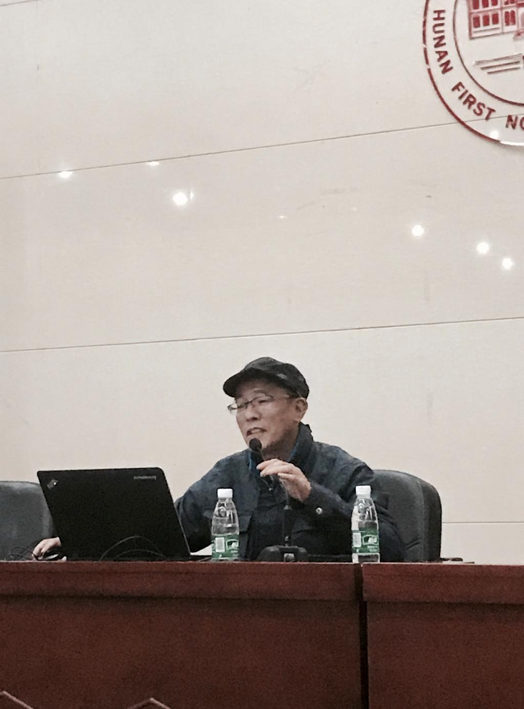 11月7日晚,湖南师范大学美术学院博士研究生导师谢雱教授应邀来我校举行了一场“美术教师的专业成长”的专题讲座。讲座由美术与设计学院院长范迎春教授主持,近三百名师生参加了讲座。
