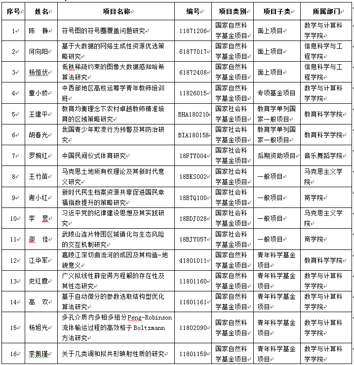 我校高度重视高级别科研项目的组织申报,切实采取多项措施,加大支持力度,提高科研项目申报质量,有效促进了教师科研水平的提高,取得了良好的效果。今年我校国家级项目共成功立项16项,其中国家自然科学基金9项,国家社会科学基金7项,显示了我校科研整体实力的提升。