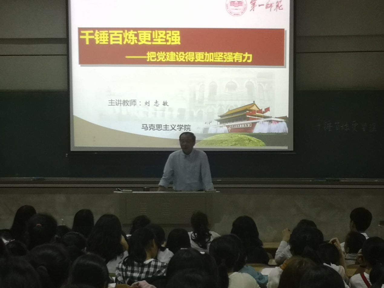 5月30日晚上,我校党委副书记刘志敏教授于润寰楼南栋201教室就“千锤百炼更坚强——把党建设得更坚强有力”专题亲自开讲形势与政策课,数计学院2018级学生两百余人参加了此次别开生面的专题教育,马克思主义学院党总支书记谭玉兰到现场观摩。 首先,刘书记回顾中国的发展、人民生活的改善,提问,改天换地的面貌如何得来,这当归功于我党领导得好。毛泽东同志曾说:路线是“王道”,纪律是“霸道”,这两者都不可少。借鉴苏联历史经验从而引出了“血的纪律”这一课题。接着,刘书记就“新时代党的建设面临的新形势新任务;“新时代党的建设总要求和战略部署;坚定理想信念是青年党员思想建设的首要任务”三大板块建构本次专题的总体纲目。最后,刘书记还推荐了相关文本和课后思考题。在座师生为这位德才兼备、为人师表的儒雅大家带来的文化与精神的饕餮盛宴得到了精神的洗礼及思想的升华,受益颇丰。