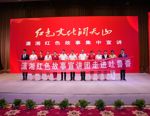 6月18日,由湖南援疆前方指挥部、吐鲁番市委宣传部等部门联合主办的“红色文化润天山”潇湘红色故事集中宣讲活动在吐鲁番市举行。我校毛泽东与第一师范纪念馆副馆长张颖、宣教科科长邹磊及湖南省全国爱国主义教育示范基地的9位优秀讲解员参与了此次宣讲活动。