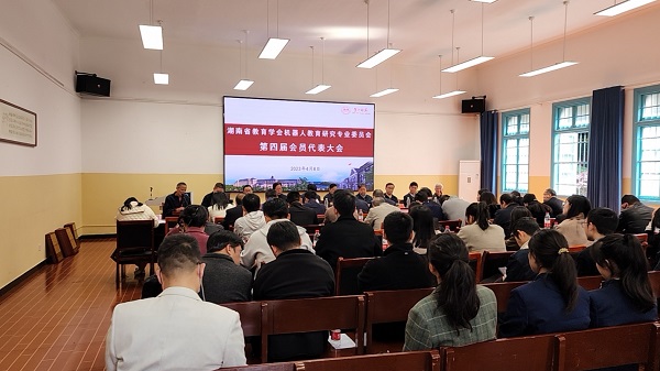 4月8日上午,湖南省教育学会机器人教育研究专业委员会第四届会员代表大会在我校城南书院校区召开,原教育厅纪检书记、巡视员汤汉文,原教育厅巡视员廖湘生,湖南省教师发展中心主任贾腊生、湖南省教育学会资深专家马仲明、中国发明协会创造分会会长谭廸熬、湖南省教育学会机器人教育专委会(以下简称专委会)第三届理事会常务副理事长周振铎及会员代表共80余人参加了会议。我校副校长周发明出席会议并讲话。