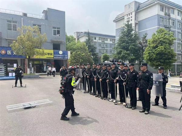 启动仪式后,国保、反恐、特巡警大队的警官们与学校保安一同进行了“反恐防暴应急演练”。整个演练过程持续十多分钟,过程紧凑、严肃逼真、处置迅速。演练结束后,特巡警大队教官示范并指导安保人员如何正确使用盾牌、钢叉等防暴器械,提升防暴技能。
