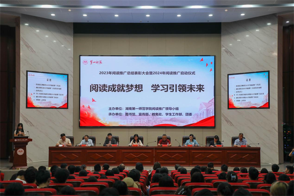 5月8日下午,我校2023年阅读推广总结表彰大会暨2024年“一校一书”阅读推广活动启动仪式在东方红校区百熙楼228会议室举行。校党委委员、副校长蒋蓉出席,宣传部、学生工作部、校团委、教务处、图书馆负责人及各学院党委副书记、学工办主任、师生代表200余人参加活动。