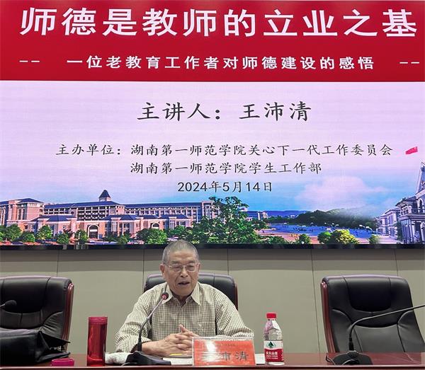 5月14日下午,学校关心下一代工作委员会邀请国务院特殊津贴获得者、我校退休特级教师王沛清老师,为师范生开展了“师德是教师的立业之基”专题讲座。校党委副书记、学校关心下一代工作委员会主任李克勤,学校关心下一代工作委员会常务副主任田明德出席活动。