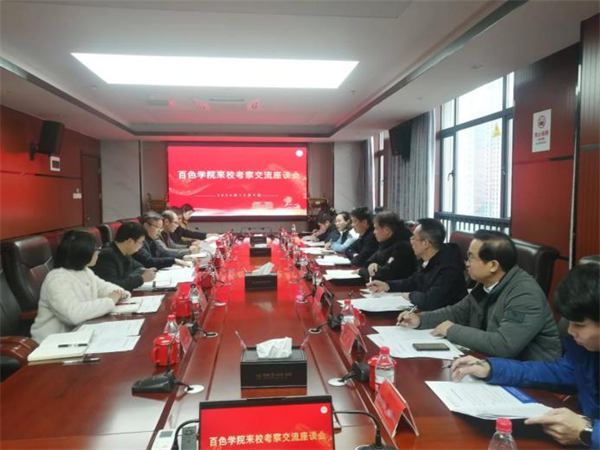 12月9日上午,百色学院党委委员、副校长吴佩杰一行来我校考察交流,双方在百熙楼713会议室举行座谈会。副校长石元泉,学科规划与研究生处、教务处、人事处及相关二级学院负责人参加座谈。