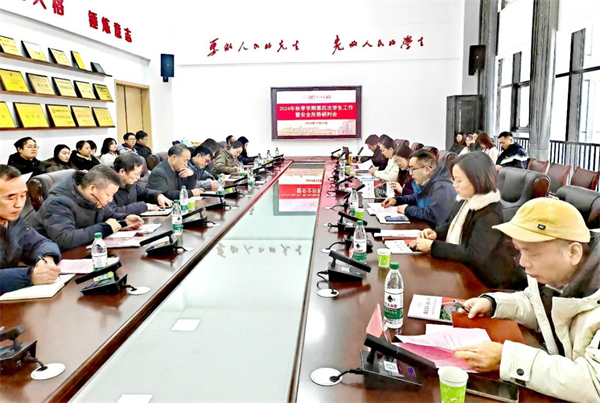 12月13日下午,我校2024年秋季学期第四次学生工作暨意识形态研判会在综合体育馆211会议室召开,校党委委员、副校长蒋蓉出席,学生工作部部长周大庆主持会议。