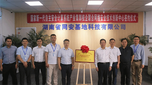 5月15日上午,我校与长沙市国链安全可靠计算机产业促进中心、湖南省网安基地科技有限公司共同举行“网络安全技术创新中心”揭牌仪式。副校长石元泉,长沙市国链安全可靠计算机产业促进中心主任杨一艺,湖南省网安基地科技有限公司总裁熊烨等出席活动。