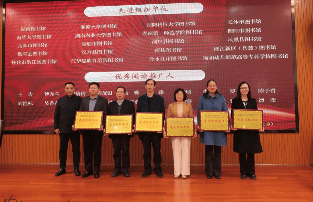 近日,湖南省图书馆学会“浩气长虹·光耀千秋”系列活动评选结果公布,我校图书馆因组织有力、成效突出,荣获“先进组织单位”称号。全省仅5所本科高校图书馆获此殊荣,其余4所均为大学图书馆。我校1名教职工获评“优秀阅读推广人”,5名教职工获评“阅读之星”,2名学生分别斩获线上阅读活动一、二等奖。